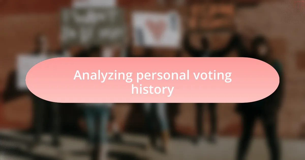 When I take a moment to analyze my personal voting history, I notice that my choices reflect a journey rather than just a single moment in time. I recall casting my first vote with a blend of excitement and trepidation, unsure how my preferences matched the broader political landscape. Each experience since then has fine-tuned my perspective—certain elections have left me wondering if my choices truly represented my beliefs or simply aligned with popular opinion.