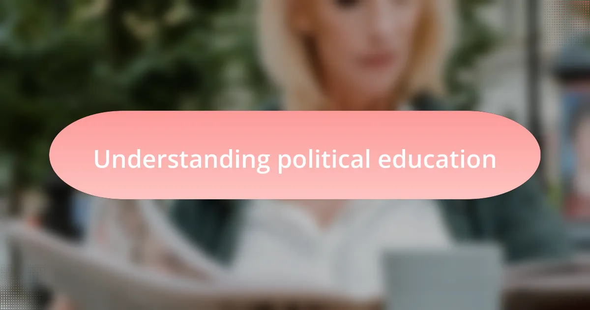 Political education serves as a crucial foundation for active citizenship, helping individuals understand their rights and responsibilities within a democracy. I still remember the first time I attended a community meeting where local representatives discussed upcoming legislation. I left feeling empowered yet confused—how could such complex issues affect my everyday life? This sparked my journey of seeking clarity in political education.